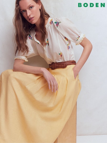 Boden Yellow Valentina Linen Skirt