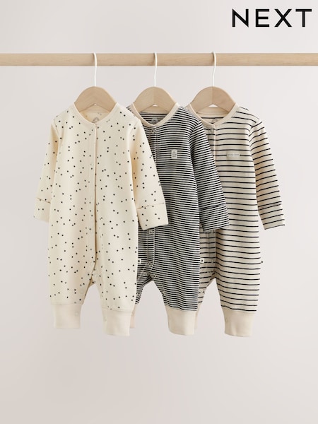 Neutral Baby Footless 2 Way Zip 100% Cotton Sleepsuits 3 Pack (0mths-3yrs)