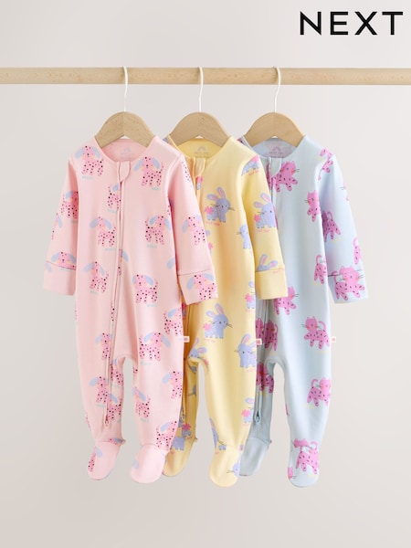 Pink/Yellow character Two Way Zip Baby Sleepsuits 3 Pack (0mths-2yrs)