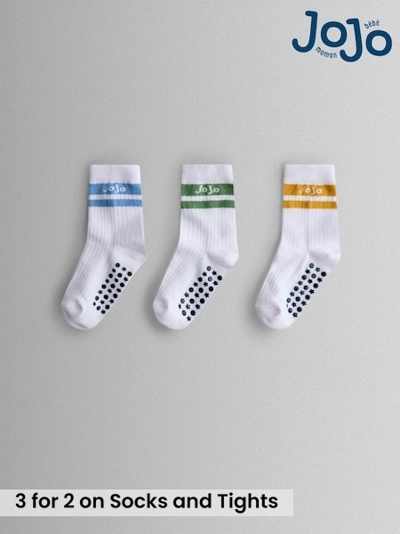JoJo Maman Bébé White 3-Pack Ribbed Socks