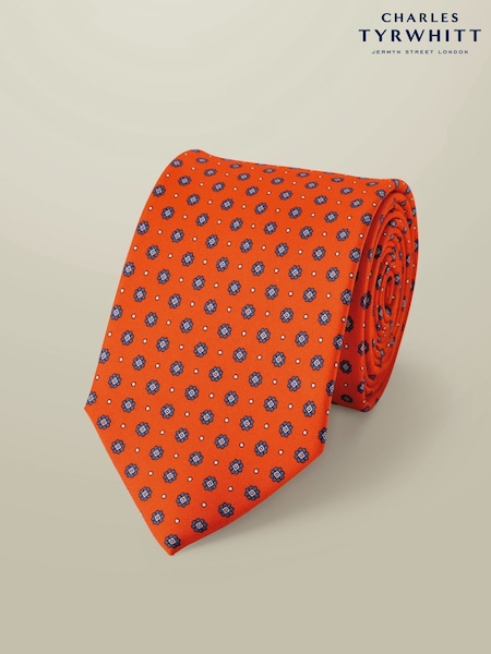 Reiss Burnt Orange Alessio Silk Floral-Medallion Print Tie
