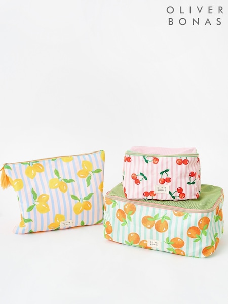 Oliver Bonas Set of 3 Blue Fruit Striped Packing Cubes