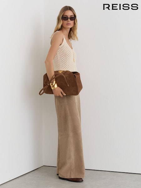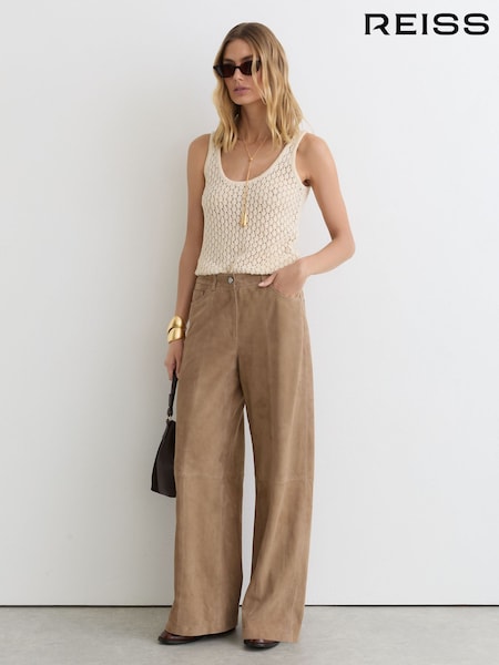 Reiss Sand Keria Suede Wide-Leg Trousers