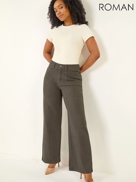 Roman Brown Petite Cotton Stretch Pocket Denim Trousers