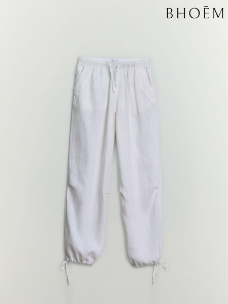 BHOEM Neutral Wide Leg 100% Linen Trousers With Tie Detail