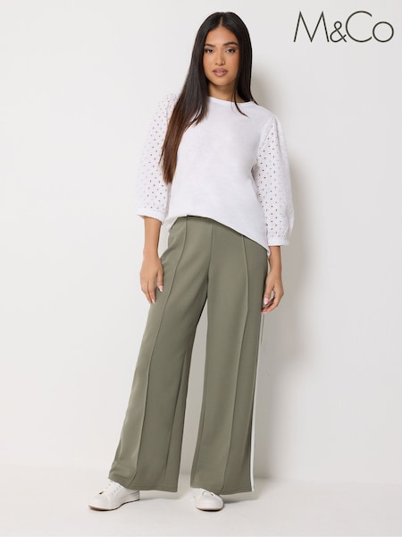 M&Co Green Petite Pintuck Side Tipped Trousers