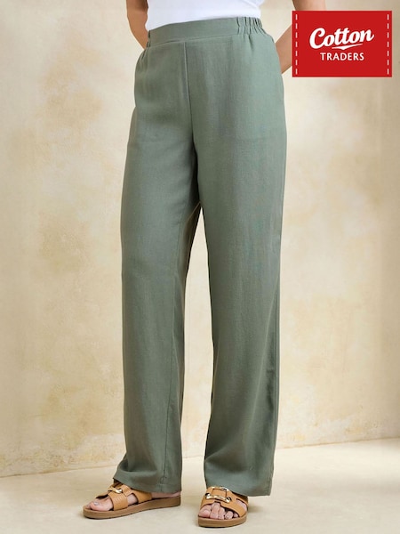 Cotton Traders Green Linen Blend Straight Leg Trousers