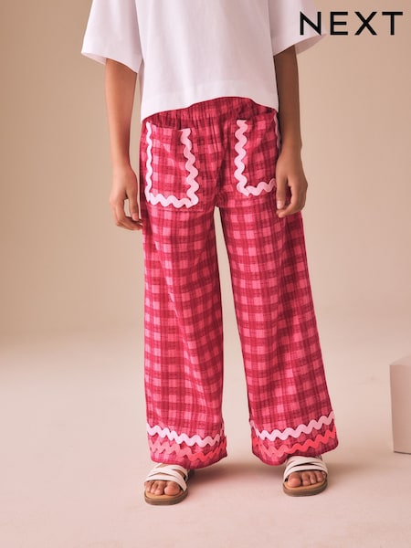 Pink Gingham Scallop Trim Wide Leg Trousers (3-16yrs)