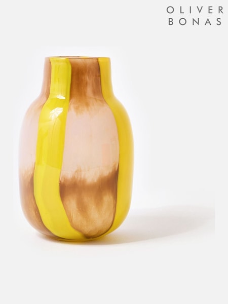 Oliver Bonas Yellow Niu Striped Glass Vase