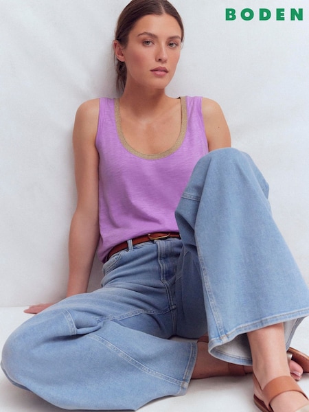 Boden Purple Metallic Trim Scoop Neck Vest