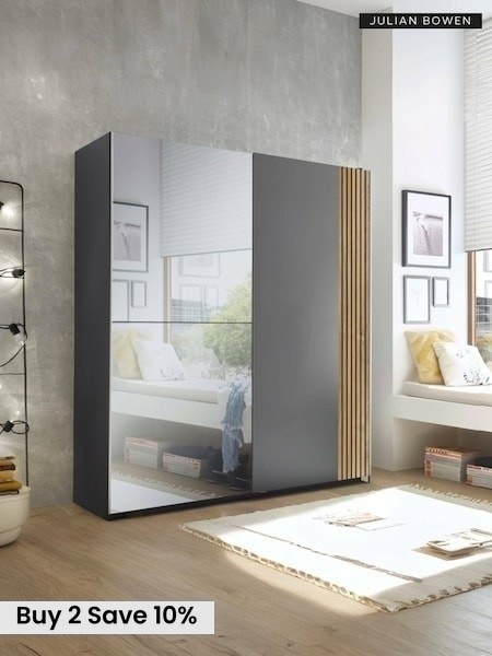 Julian Bowen Light Oak and Dark Grey Berno Sliding Door Wardrobe With Mirror