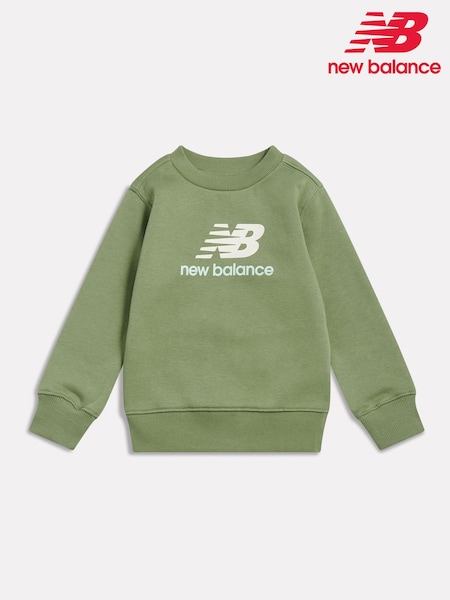 New Balance Green Stacked Logo Brushback Crew Neck Sweatshirt