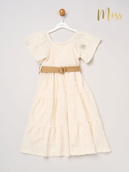 Miss Cream Textured Top Wide Leg Trouses And Scrunchie Outfit Set