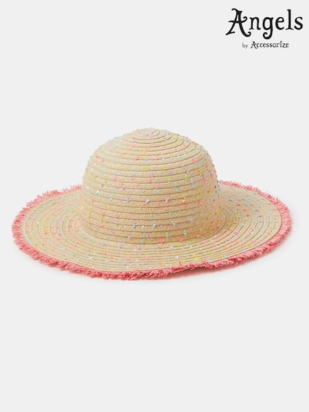 Angels By Accessorize Cream Girls Speckled Floppy Straw Hat