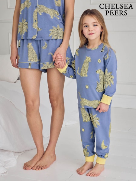 Chelsea Peers Blue Kids Leopard Mouse Chef Print Long Pyjamas Set 2 Pack 1-12 Years