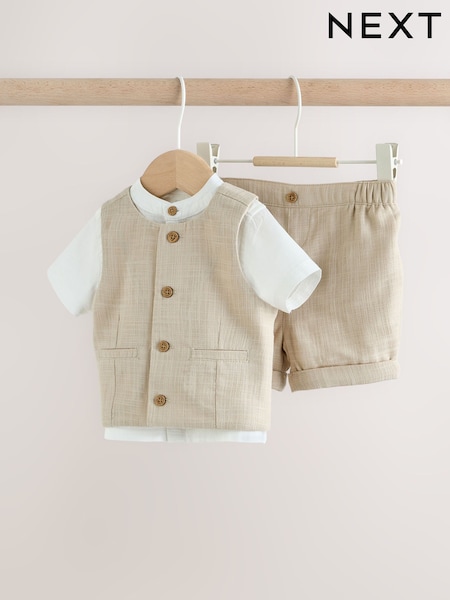 Neutral Woven Waistcoat, Shirt and Shorts Baby Set 3 Piece (0mths-2yrs)