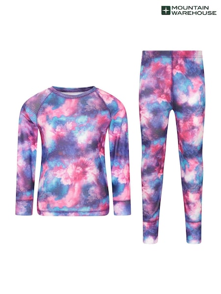 Mountain Warehouse Purple Talus Printed Baselayer-Top & Pants Set