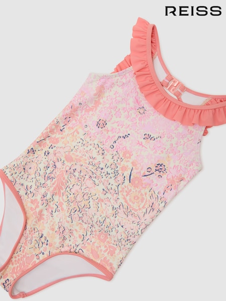 Reiss Yellow Yasmin 3-9 yrs Printed Cross-Strap Swimsuit