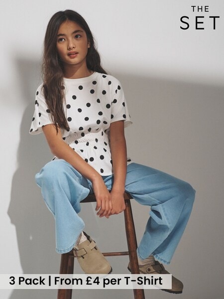 The Set 3 Pack Puffball Hem Cotton Jersey T-Shirts Pink/Khaki