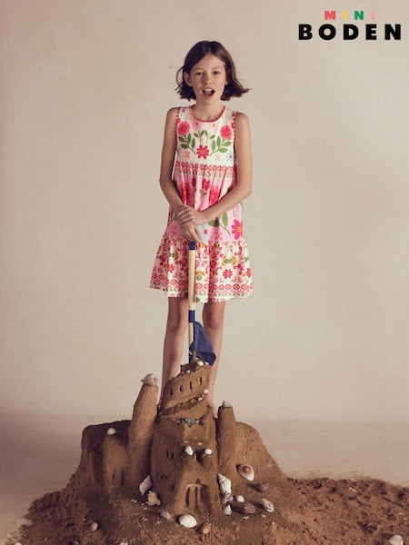 Boden Pink Hotchpotch Floral Jersey Cross Back Dress