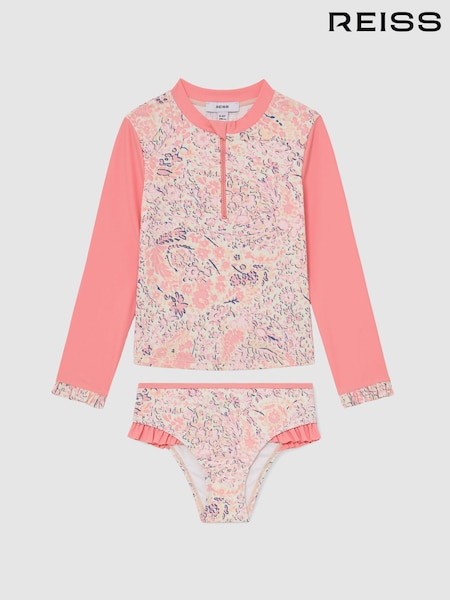 Reiss Coral Pink Nola 3-9 yrs Printed Rash Vest Bikini Set