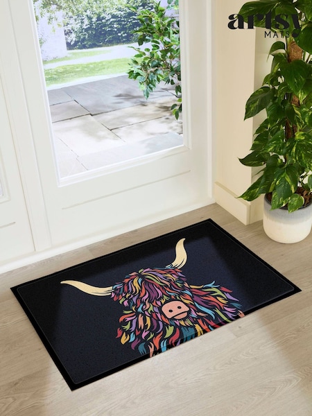 Artsy Mats Multi Highland Cow Colour Indoor Outdoor Doormat