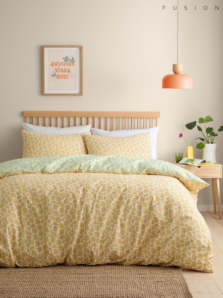 Fusion Yellow Retro Daisy Floral Print Easy Care Duvet Cover Set