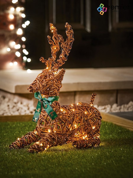 Premier Decorations Ltd 47cm Lit MA Battery Operated Lying Rattan Reindeer