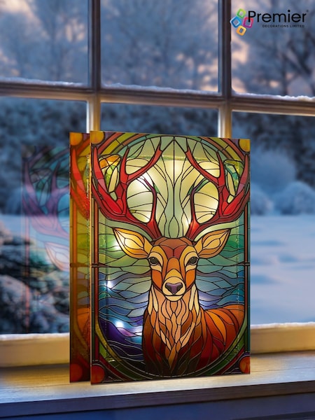 Premier Decorations Ltd Lit Stained Glass Stag Design Table Top Ornament
