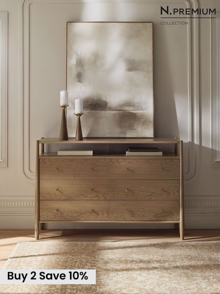 Mid Natural Farndon N. Premium Oak Veneer 6 Drawer Chest of Drawers