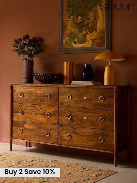 Swoon Light Brown Reyna Mango Wood Six-Drawer Chest