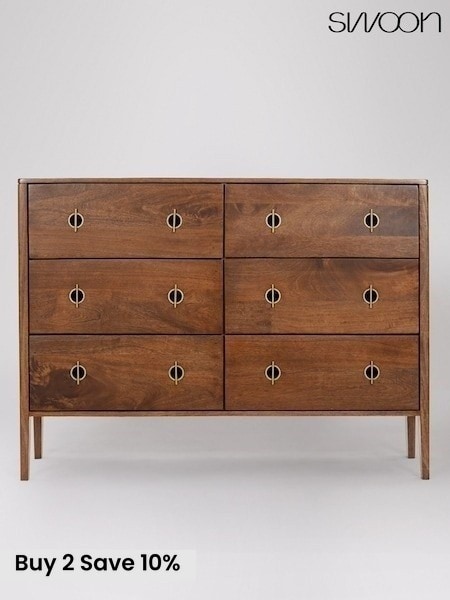 Swoon Mid Brown Morse Mango Wood 6 Drawer Chest