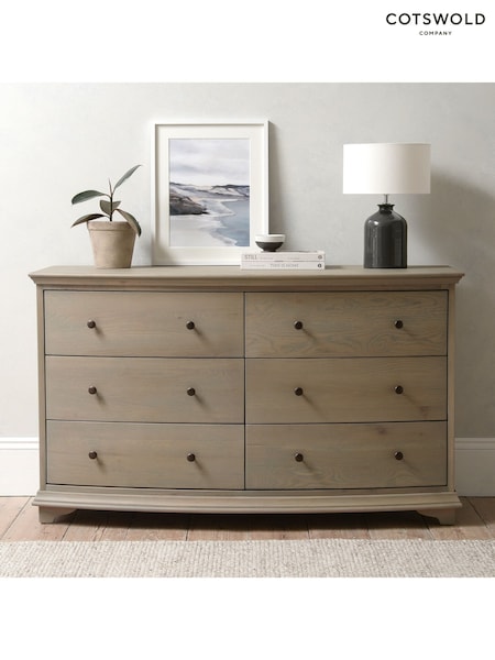 Cotswold Company Smoked Oak Winchcombe Low and Wide 6 Drawer Chest