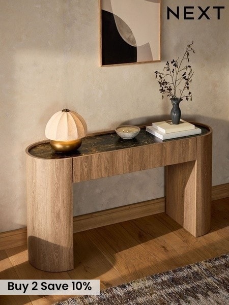 (181)Explore our collection of console tables designed to enhance your space. Choose from a wide selection of designs, from wooden consoles and oak finishes, to mirrored and glass tops that exude a sophisticated style. Create a beautiful hallway feature with our narrow consoles, or add a sleek table to your living room for additional storage. Just add some stunning wall art above for an impressive look
