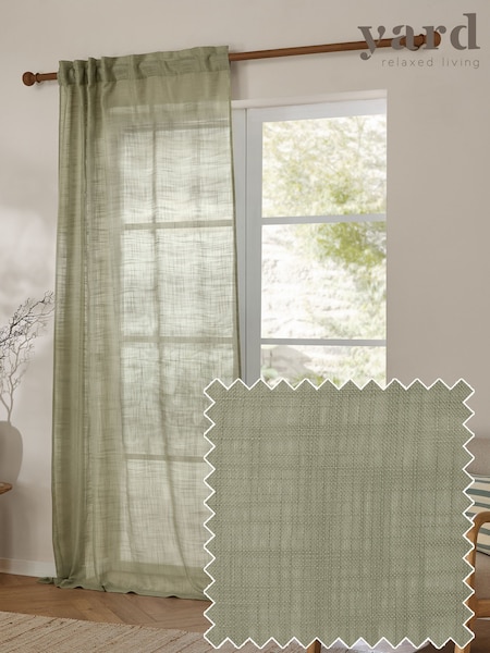 Sage Green Linen Look Slot Top Voile Unlined Sheer Panel Curtain