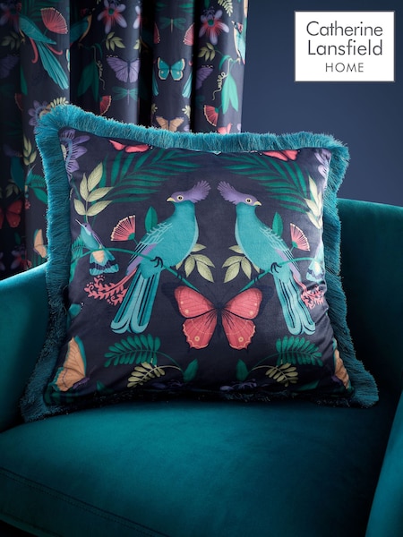 Catherine Lansfield Navy Blue Mya Tropical Floral Fringe Cushion
