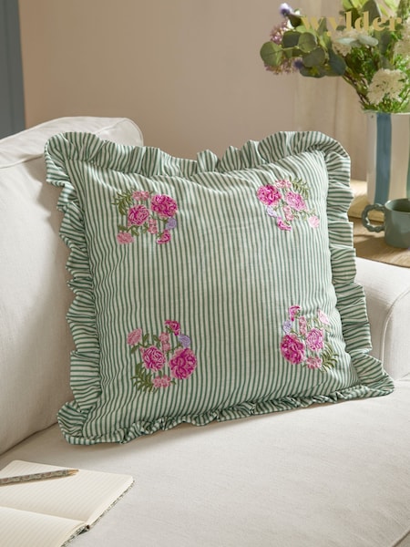 Wylder Sage Martha Embroidered Ruffle Fibre Filled Cushion