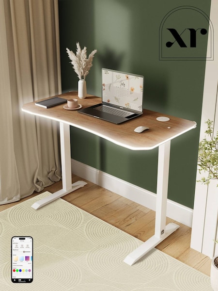 XR Living Oak White Office Desk with Wireless Charging and LED Lights