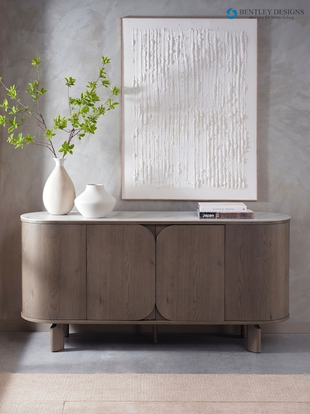 Bentley Designs Grey Oiled Oak White Duo Ceramic Wide Sideboard