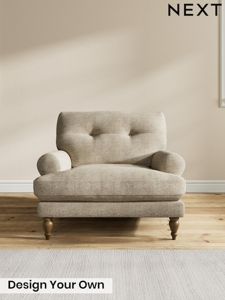 Woven Chenille Easy Clean/Mid Natural Erin Buttoned Back Deep Relaxed Sit