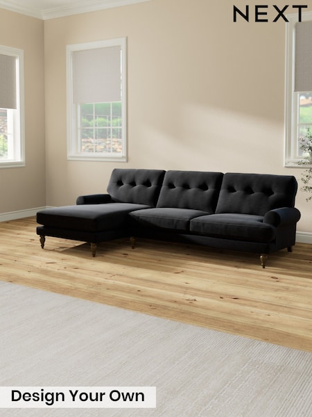 Fine Chenille Easy Clean/Black Erin Buttoned Back Deep Relaxed Sit