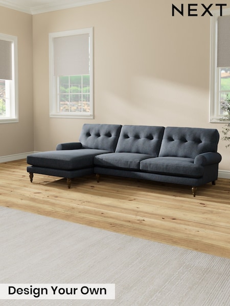 Tweedy Chenille/Navy Blue Erin Buttoned Back Deep Relaxed Sit
