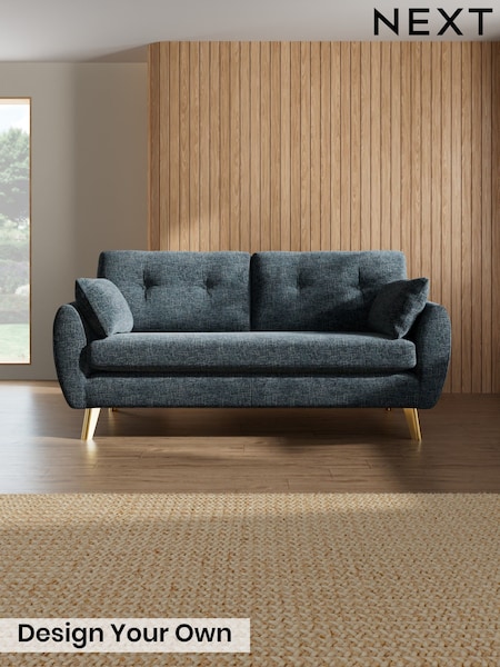 Luxe Chenille/Navy Blue Wilson Buttoned Back