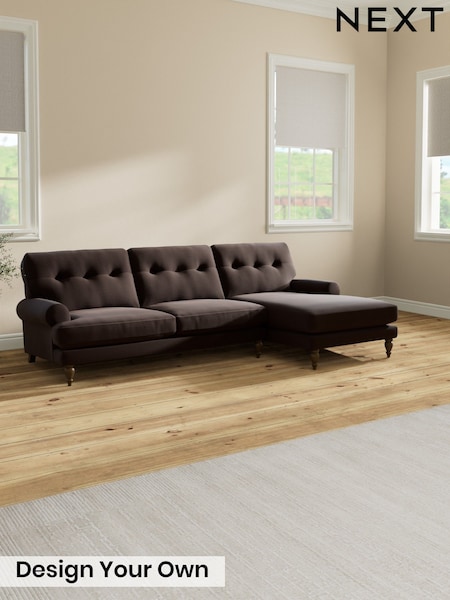 Fine Chenille Easy Clean/Chocolate Brown Erin Buttoned Back Deep Relaxed Sit