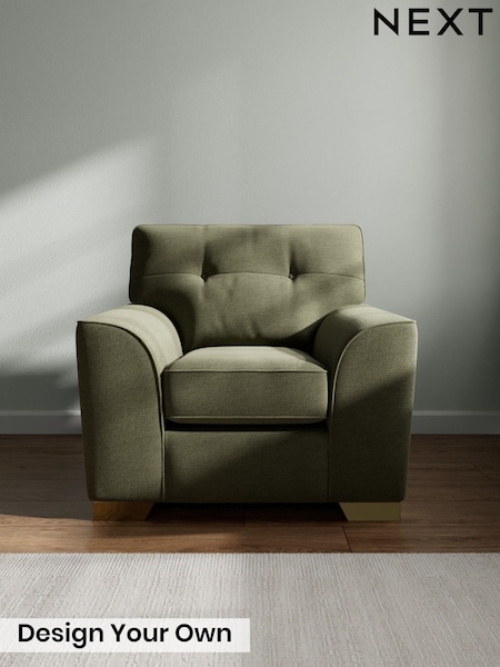 Fine Chenille Easy Clean/Mid Khaki Green Stamford Buttoned Back