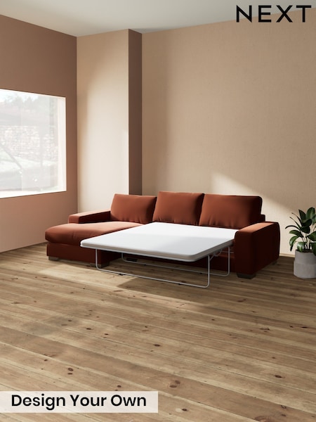 MADE.COM Cinnamon Orange Velvet Large Maxton 2 Seater Sofa Bed