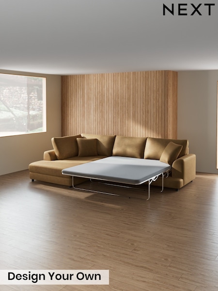 Soft Velvet Ochre Yellow Palma Double Sofa Bed