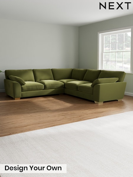 Plush Velvet Easy Clean/Mid Olive Green Stamford Grand Relaxed Sit