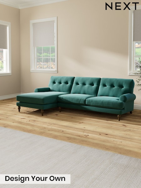 Fine Chenille Easy Clean/Dark Juniper Green Erin Buttoned Back Deep Relaxed Sit