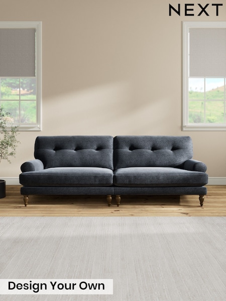 Boucle Chenille/Dark Slate Blue Erin Buttoned Back Deep Relaxed Sit